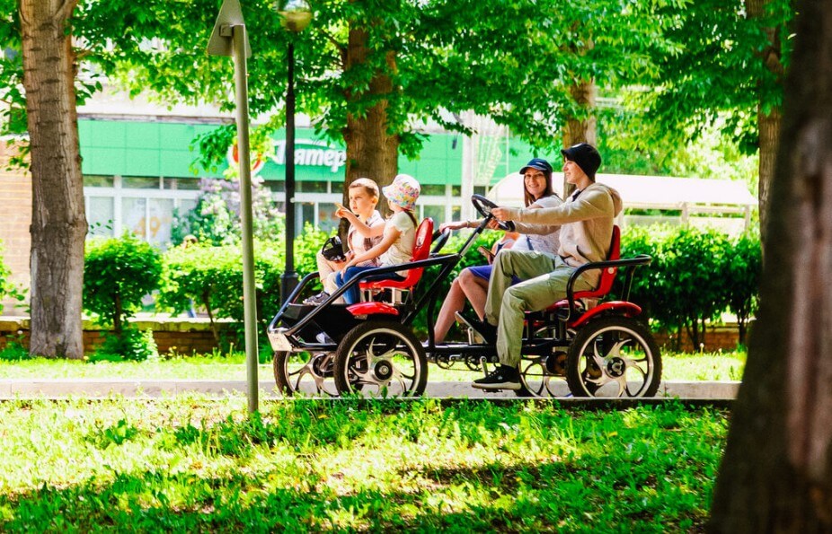 - широкие дорожки для колясок и самокатов; - зоны отдыха с тенистыми скамейками; - ухоженные территории.