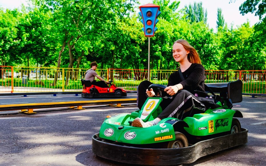 - для малышей — качели, батуты, мягкие горки, мини-карусели; - для всей семьи — лодочки на канале, паровозики, автодром, водные аттракционы; - для смельчаков — экстремальный “Show Time”, захватывающая “Летающая тарелка”, стремительная “Ракета”, для любителей острых ощущений “Супер полет”.